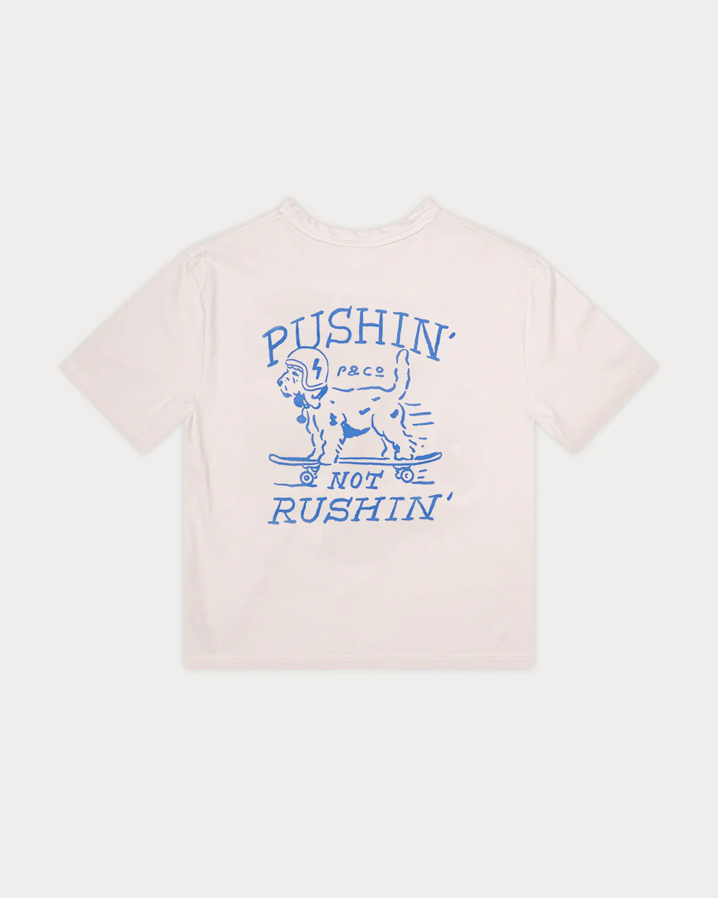 The Always Pushin’ Boxy T-Shirt in bone is inspired by the carefree energy of summer vacations. Made from 100% organic cotton, this tee features a playful illustrated graphic. With a boxy fit, front and back screen prints, and a structured yet relaxed silhouette, this piece is designed to be a go-to staple for warm-weather adventures.